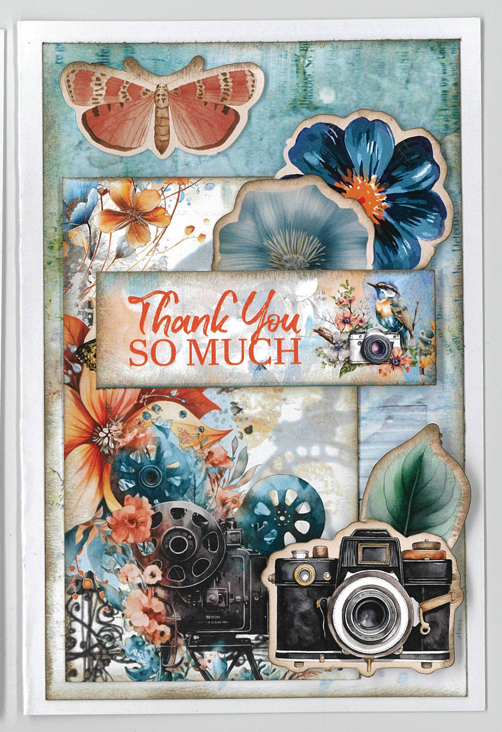 - 16x 5.8" x 3.8" double sided papers or ephemera Items. These papers are intentionally cut smaller than the cards to give a crisp white border