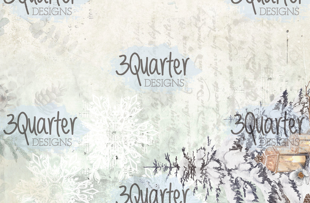 - 16 single sided 3.8" x 5.8" papers (12 patterned sheets plus 4 sheets with quotes/words and other paper elements) with white, cream and green tones featuring beautiful Christmas and Winter themed designs. These papers are intentionally cut smaller than the cards to give a crisp white border.