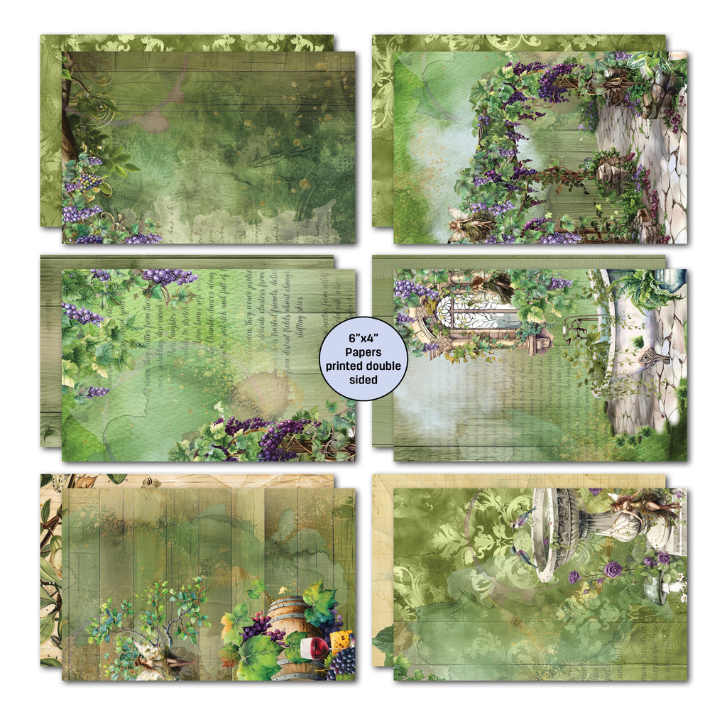 - 16x 5.8" x 3.8" double sided papers or ephemera Items. These papers are intentionally cut smaller than the cards to give a crisp white border