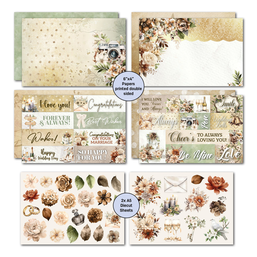 The whole Wedded Bliss collection works together to give you plenty of matching product and allows you the ability to create a project that suits you from the elements - whether you are into scrapbooking, card making, mini albums and even canvas designs this collection can be utilized in all of them. The collection includes a 12" x 12" Design Paper & Diecuts Set, an 8" x 8" Paper Pack, a 6" x 6" Paper Pack, a 4" x 6" Card Pack and Tuck N Play Cards. All sold separately. Designed and printed in New Zealand.