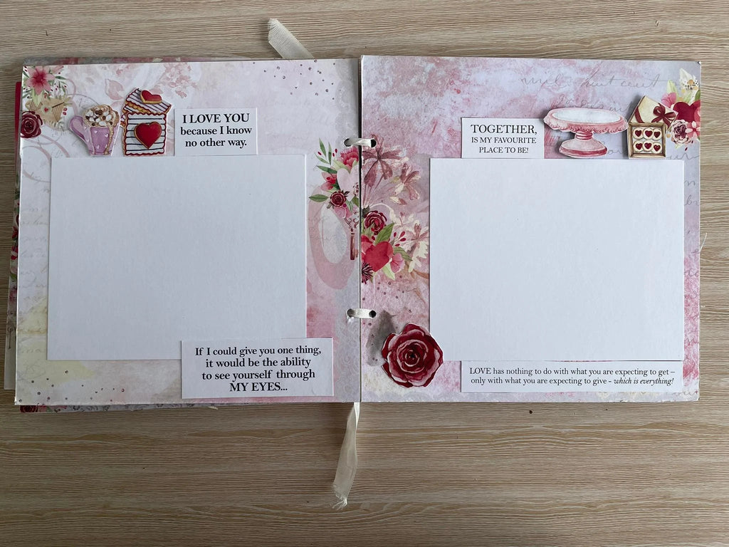 - 11 single sided 8" x 8" papers featuring romantic themes in neutral cream, red and pink tones