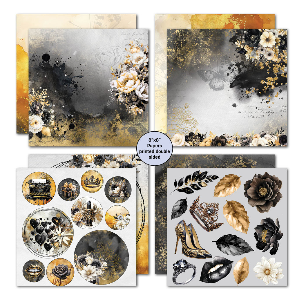 Experience the elegance of the 3Quarter Designs Golden Ebony collection. A luxurious colour way of black and shades of gold. With a feminine vibe for evenings out, girl nights, graduations and celebrations. This collection is perfect for creating timeless and elegant projects.