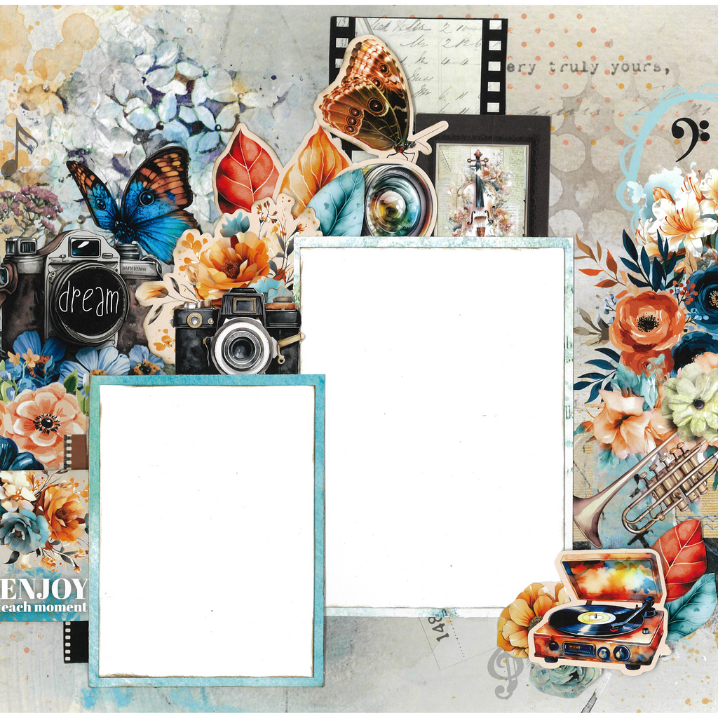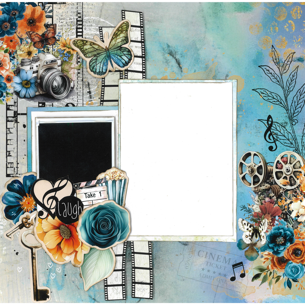 3Quarter Designs' take on music and theatre with pops of orange, on a base of blues and cream; featuring filmstrips, musical scores, and cameras making this collection a very versatile pack.