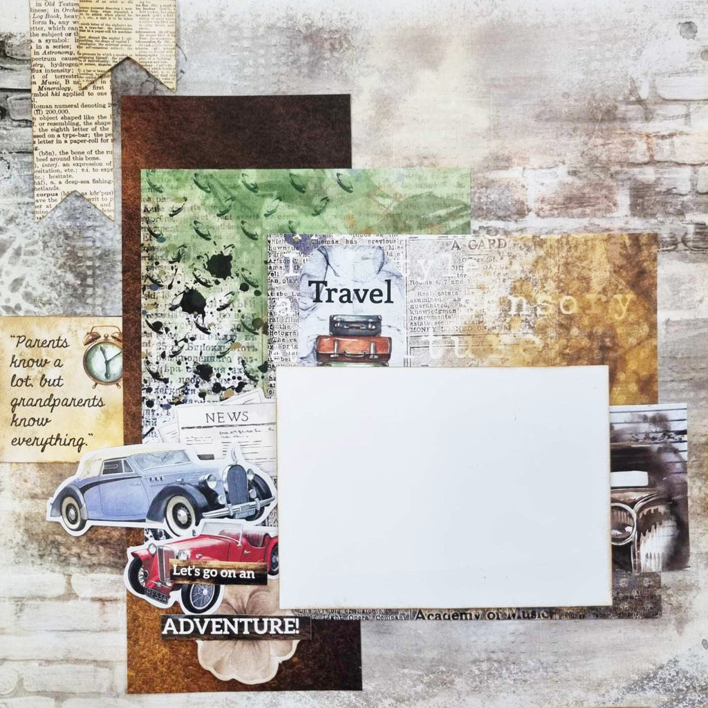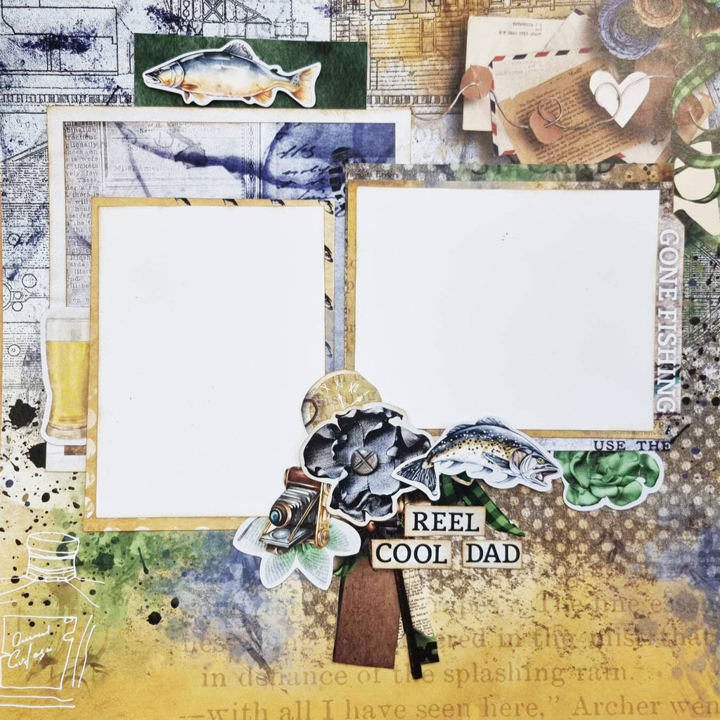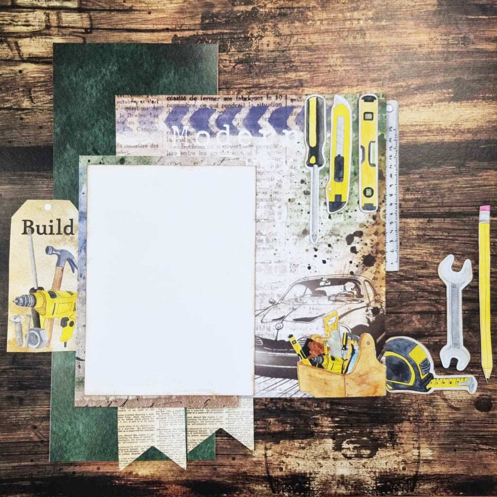 • 6 fussy cutting pages featuring matts, quotes, foldable pockets, labels, and other paper elements to be used amongst your designs with male-themed vintage and modern feel elements