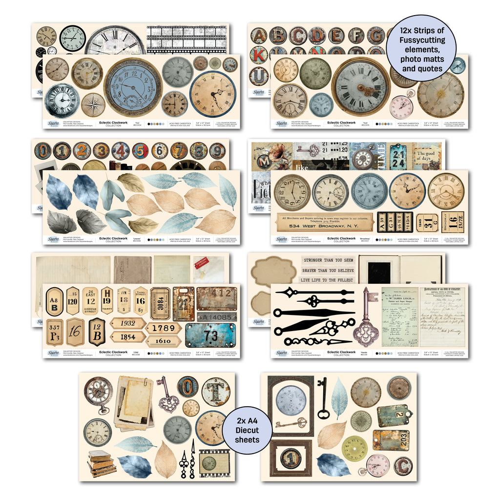 3Quarter Designs Eclectic Clocks 12x12 Design Paper & Diecuts Set