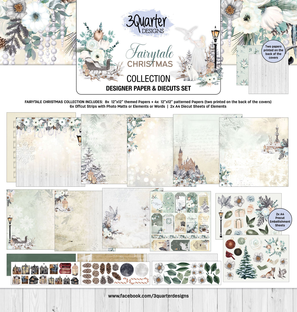 The Fairytale Christmas 12" X 12" Scrapbook Collection Pack with white, cream and green tones has beautiful Christmas and Winter themed designs paired with the designer's signature mixed texture look, creating the 3Quarter Designs unique and versatile much-loved look. Perfect for Christmas and Winter projects. The Fairytale Christmas collection includes a 12" x 12" Scrapbook Collection Pack, an 8" x 8" Paper Pack, a 6" x 6" Paper Pack and a 4" x 6" Card Pack. All sold separately. Designed and printed in New Zealand.