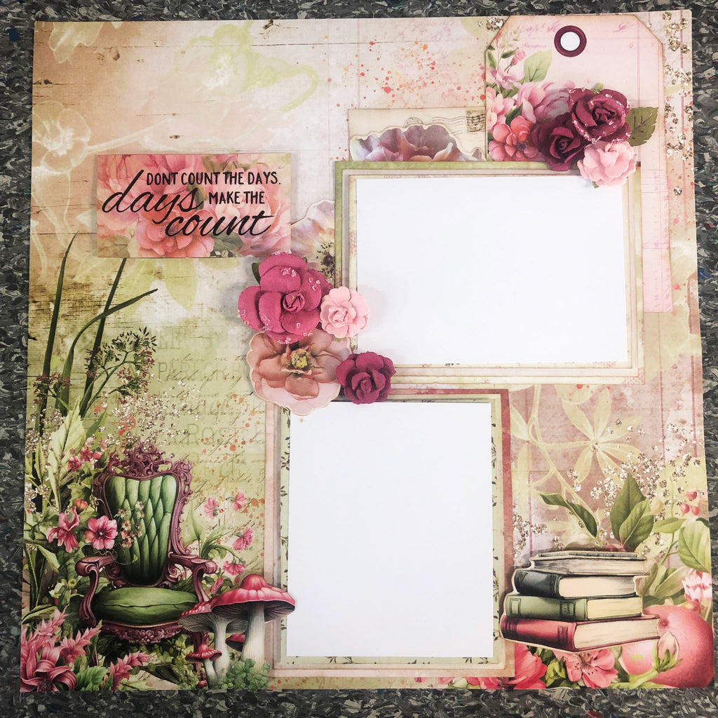 - 12 single sided 12" x 12" papers feature bright red and green tones with images of beautiful florals and mushrooms