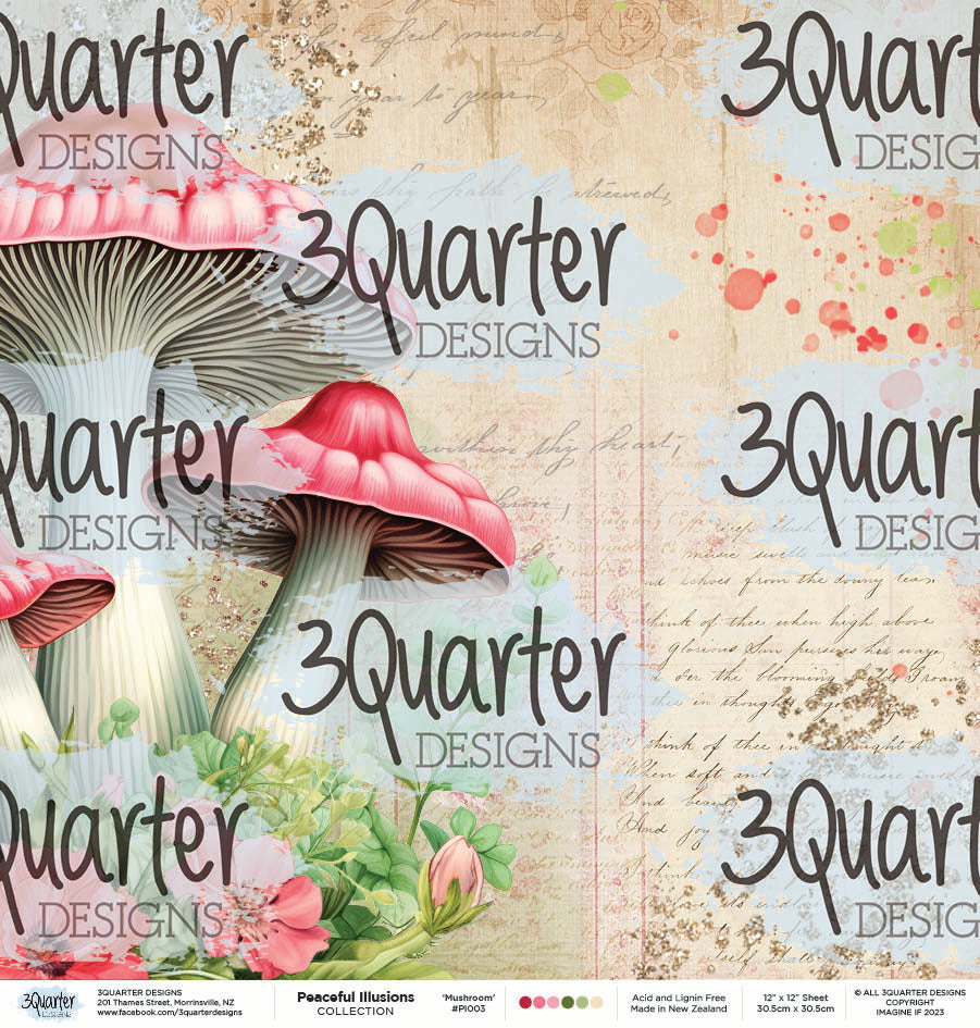 The Peaceful Illusions 12" X 12" Scrapbook Collection Pack has bright red and green tones with images of beautiful florals and mushrooms which pairs with the designer's signature mixed texture look, creating the 3Quarter Designs unique and versatile much-loved look. Perfect for projects for any occasion. The Peaceful Illusions collection includes a 12" x 12" Scrapbook Collection Pack, an 8" x 8" Paper Pack, a 6" x 6" Paper Pack and a 4" x 6" Card Pack. All sold separately. Designed and printed in New Zealand.