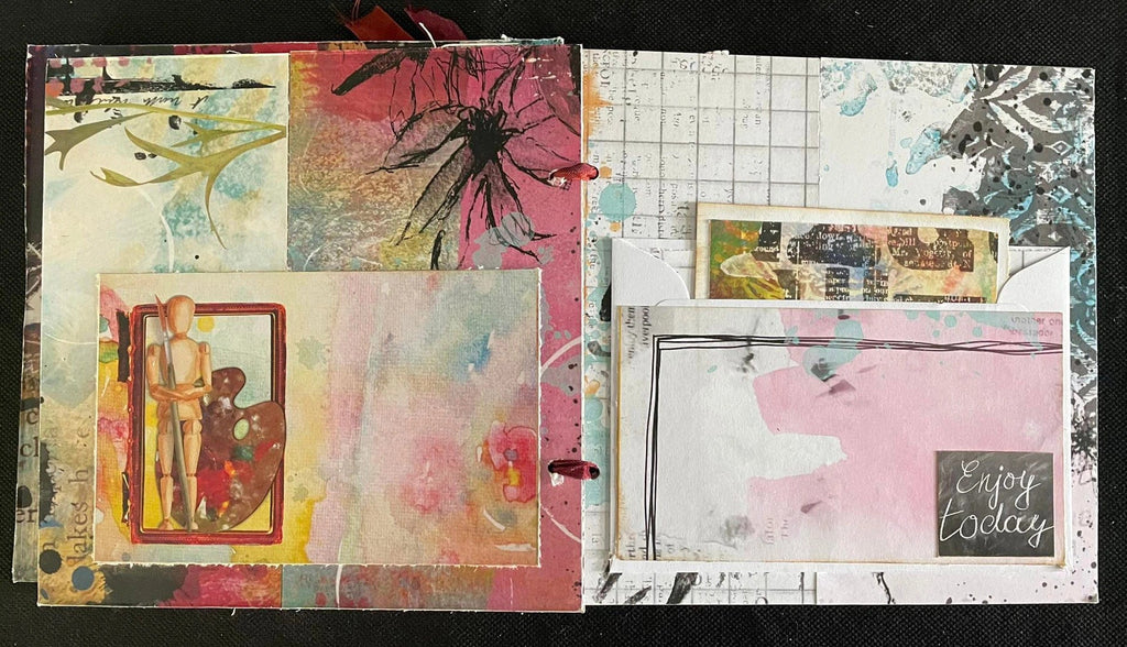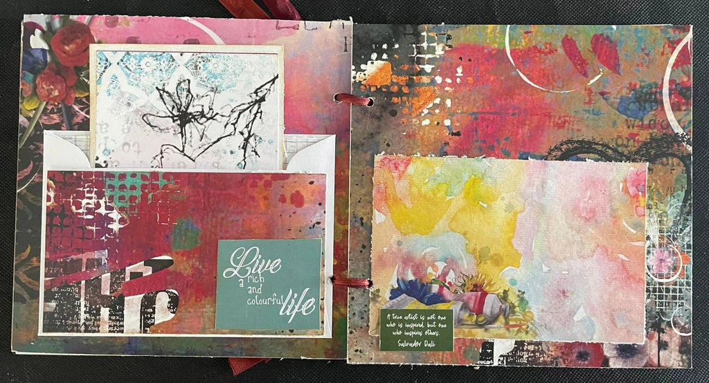 The 3Quarter Designs Artist Within Mini Album Base Kit has a mixed media feel with images of paint, paint brushes and more. The set includes 9x 12”x12” Papers with a guide for cutting the papers to match the example on the reverse | 4x Offcut sheets featuring a mixture of matching elements and matts | Chipboard background pieces for album + Lasercut Chipboard design.