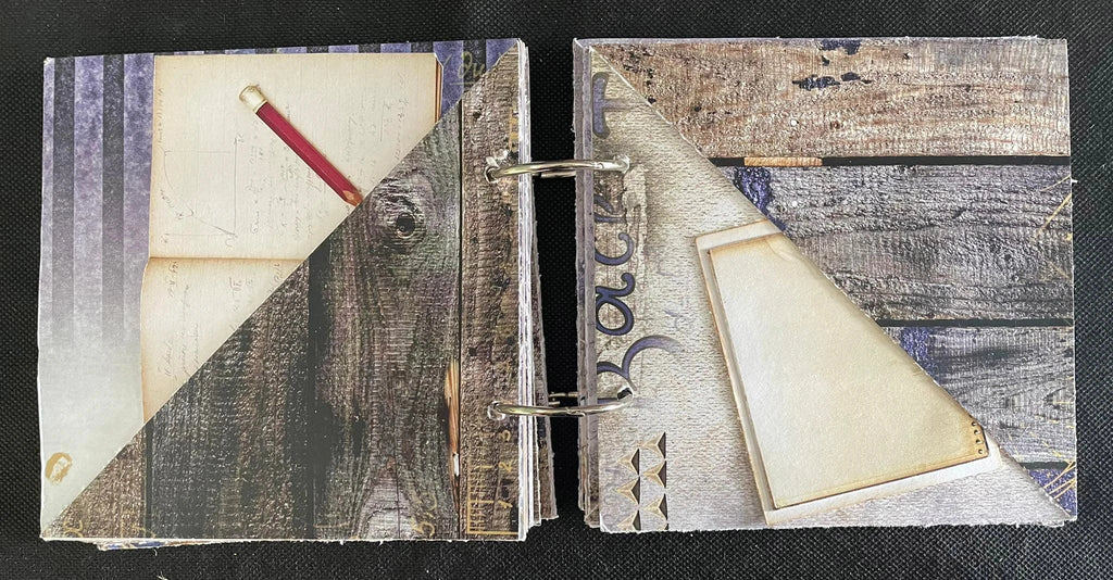 The 3Quarter Designs School Yard Mini Album Base Kit has a vintage feel with images of pencils, papers, rulers, art supplies and more. The set includes 6x 12”x12” Papers with a guide for cutting the papers to match the example on the reverse | 4x Offcut sheets featuring a mixture of matching elements and matts | Chipboard background pieces for album + Lasercut Chipboard design.