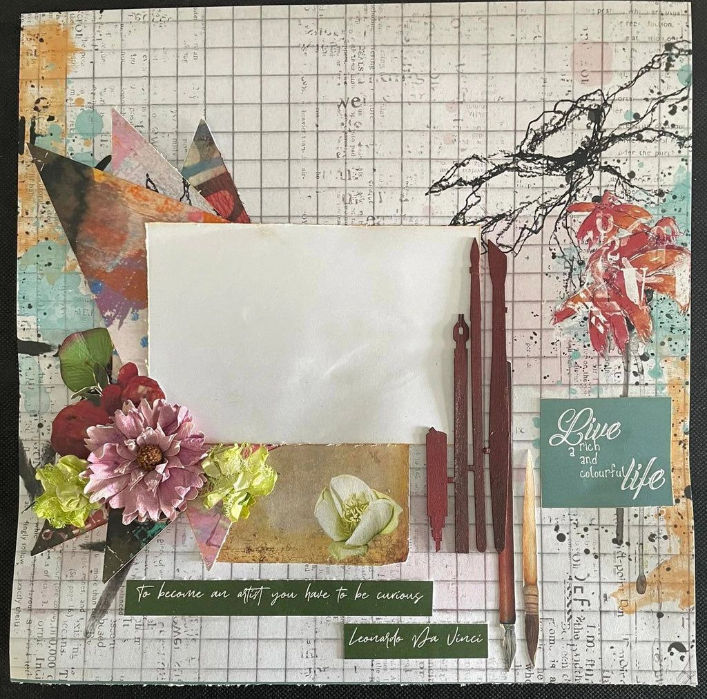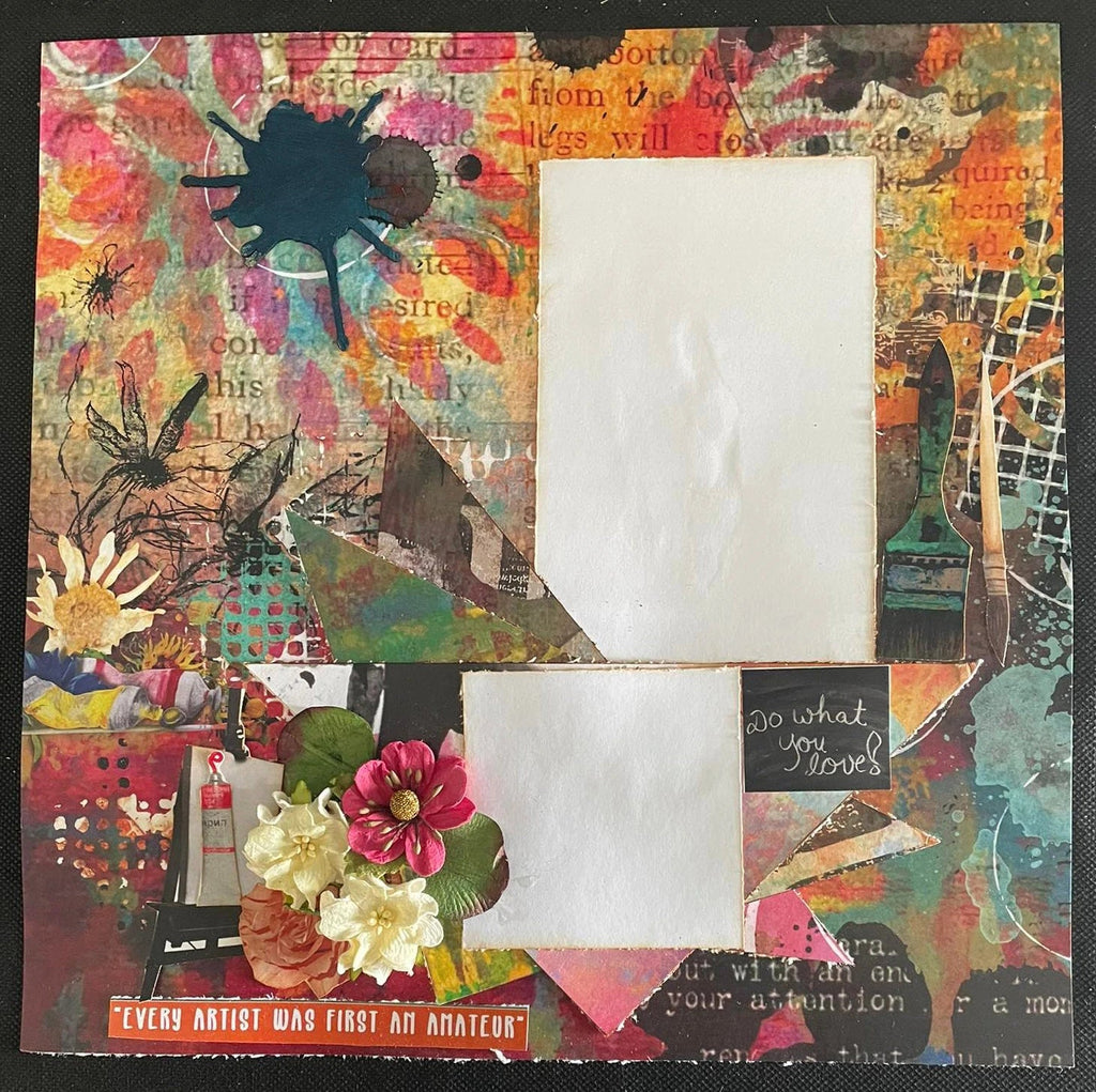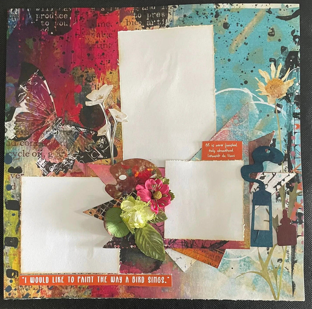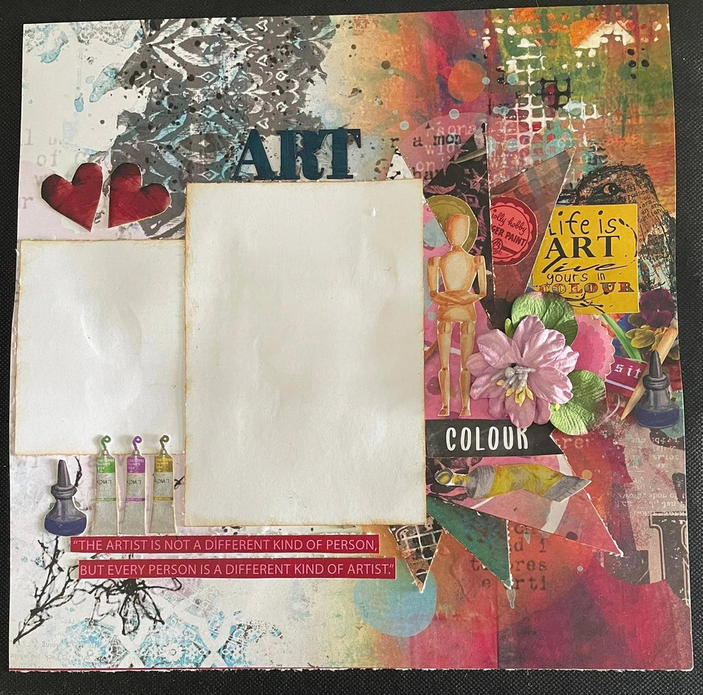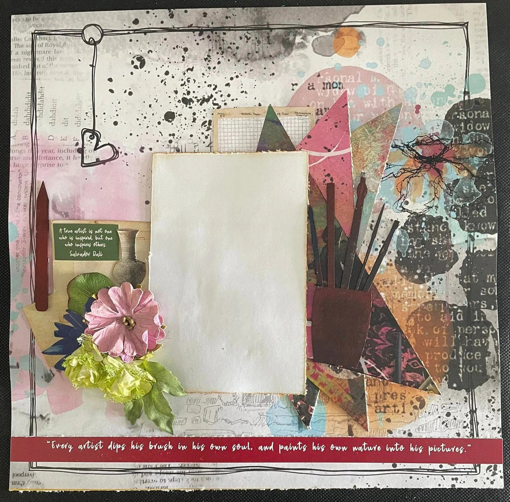 The 3Quarter Designs Artist Within Collections make 6 Layouts and has a mixed media feel with images of paint, paint brushes and more. The back cover features 6 layouts designed using this collection as inspiration for what you can make!