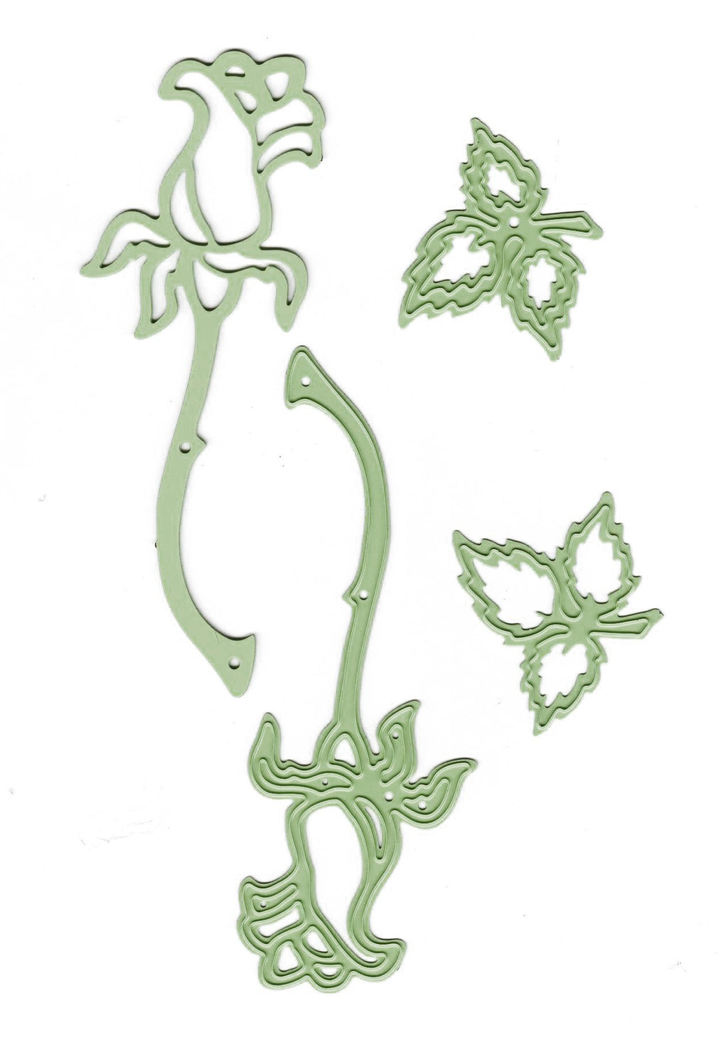 Set of 2 long stemmed roses and a let of 3 leaves. Sizes" Roses 3 3/4" long Leaves: 1 1/4"