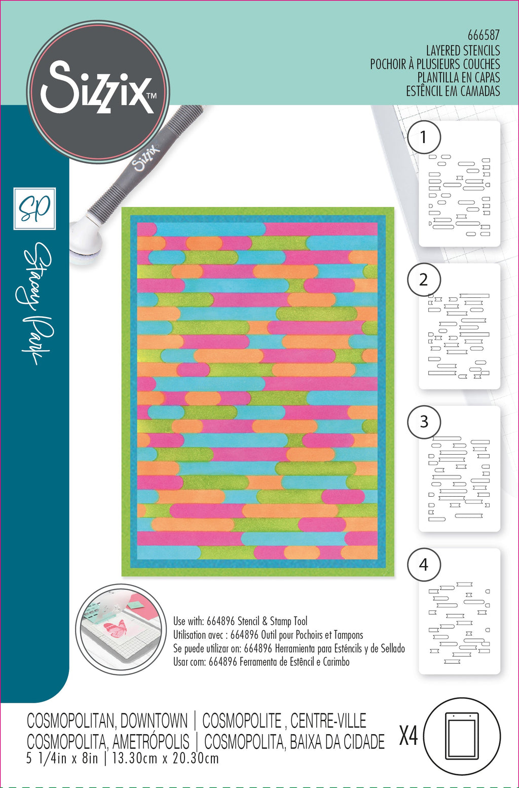 Sizzix A6 Layered Stencils 4PK Cosmopolitan, Downtown by Stacey Park