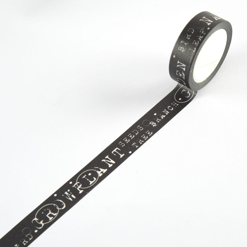 This black and white washi tape features garden themed text and is perfect for creating borders, layouts, or adding accents to your journaling pages, planners, cards, scrapbook pages, mixed media projects, envelopes, gifts and many more. This versatile tape is easy to tear and adhere to almost any surface.