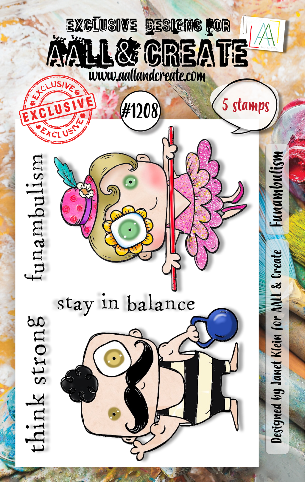 Great mix of stamps with a wonderful array of circus themed elements. This set features a tightrope walker and a strong man plus the perfect text for finishing off your projects. This stamp set would be perfect for cards and scrapbook pages as well as mixed media.