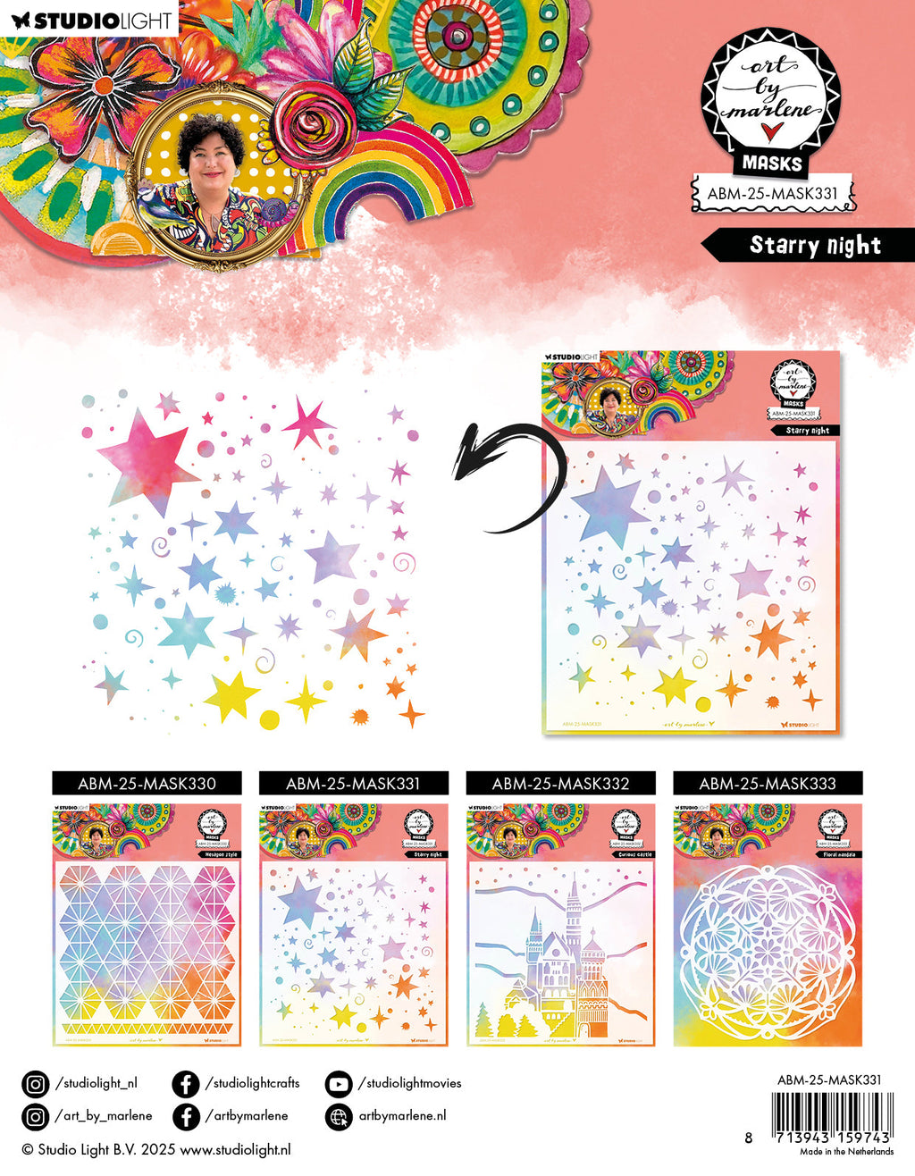 Studio Light stencils allow you to create beautiful backgrounds or add details to your creation. The masks are made of strong plastic which makes them easy to clean and reusable.