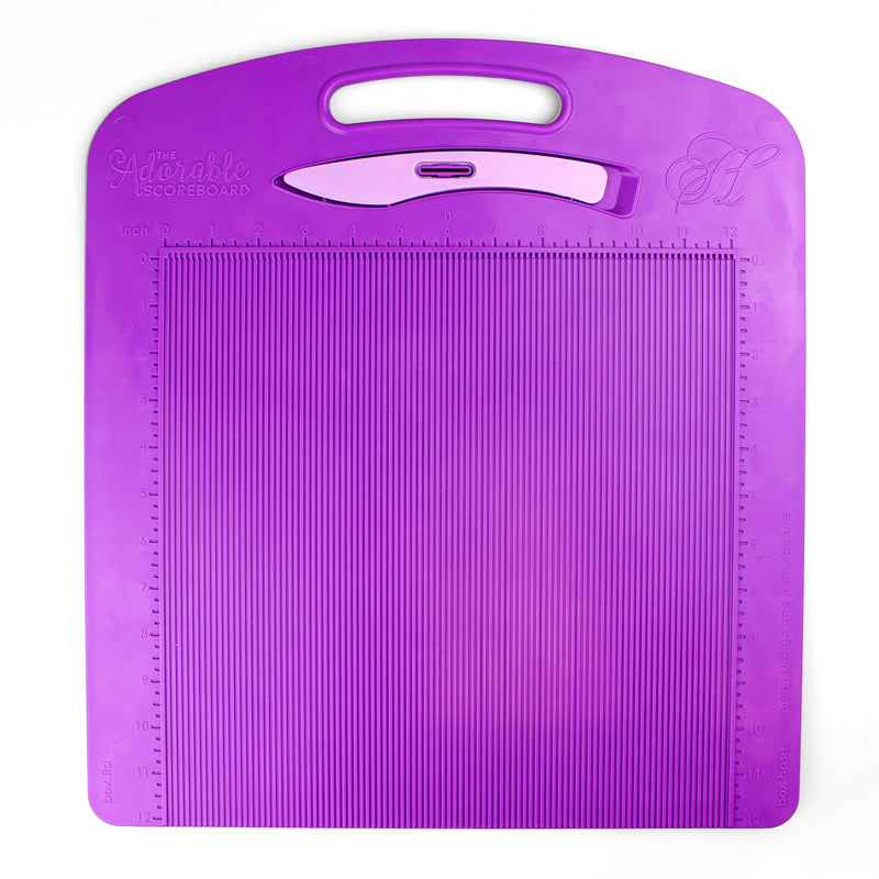The Adorable Scoreboard is a double-sided scoreboard featuring 12" x 12" scoring areas. You will find metric measurements on one side and imperial measurements on the reverse allowing you to work in both cm and inches with increments as small as 1/8” and 0.5cm. There are indents on the top edge to ensure full page scoring and the board features a centre point mark, meaning you can easily determine the centre point of any piece of cardstock.