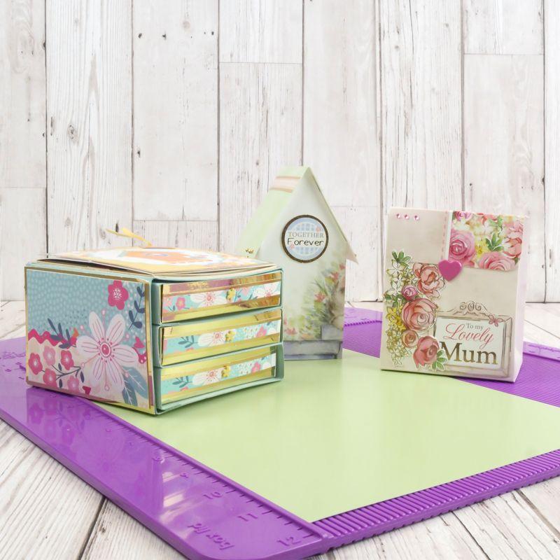 There is in-built box making technology included, which makes it easier than ever to create beautiful boxes; the indent on the right hand side of the board is ever so slightly smaller than the one on the left. If you use the right hand side to create a box base and the left hand side to create the lid they will be perfectly sized to fit together.