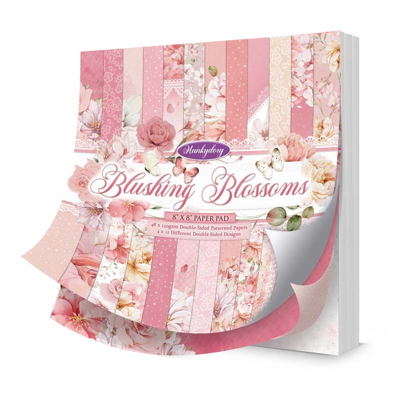 The Blushing Blossoms 8” x 8” Paper Pad features 48 double-sided pages packed full of beautiful watercolour floral artwork. There’s a wide variety of florals such as roses, peonies, magnolia, lotus flowers and chrysanthemums to name a few, complimented with ornate patterns lace details and watercolour splashes which create the most stunning selection of pages. Turn these over and as always you will find the most delightful designs on the reverse, 4 dot patterns, 4 lace patterns, each on a variety of colours featured within the kit, alongside 4 striking all over floral patterns ensuring that this pad is the perfect extension to your main topper collection and is such good value for its contents.