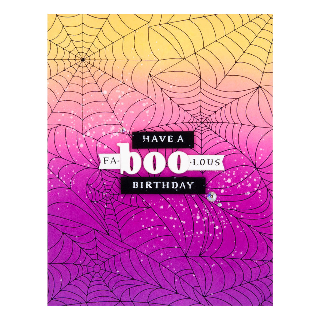 Spider Web Background Press Plate is part of the BetterPress Halloween Collection. This spooky fun background plate is full of spider webs. Note how the edge follow along the web’s silhouette. It would easily fill a standard A2 size (4.25 x 5.50 in.) card front. What a fun addition to your Halloween cardmaking collection! Ink the plates with the BetterPress Ink to be pressed against the BetterPress Cotton Card Panel and Sheets for a crisp letterpress design.