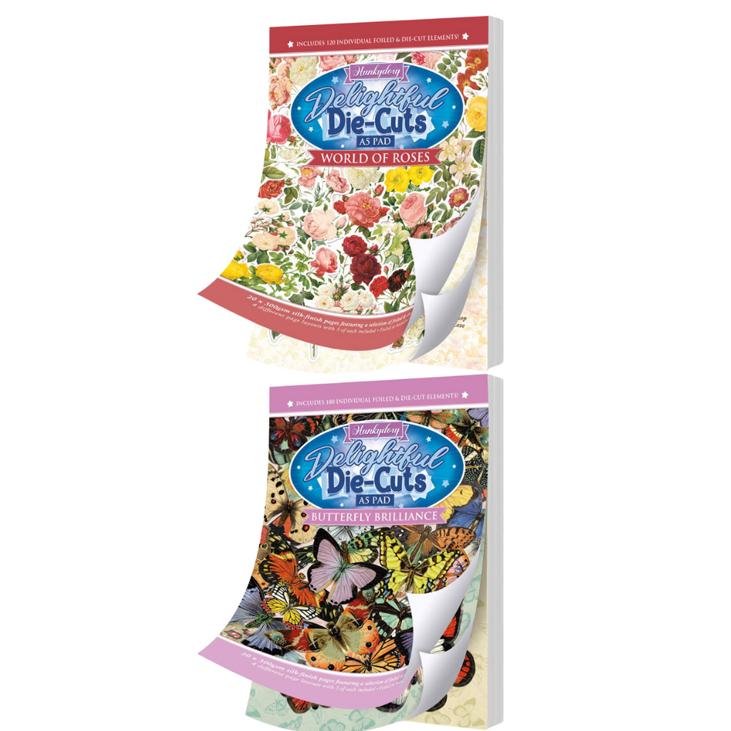 Brilliant colours and stunning patterns abound in this Delightful Die-Cuts Pad featuring an array of bright and beautiful butterflies of different shapes and sizes! You’ll find 36 different butterflies throughout with 5 of each included meaning an impressive 180 individual die-cut elements all accent foiled in beautiful Rich Gold!