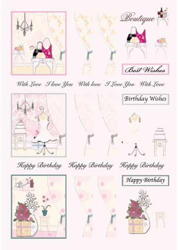 Boutique Window Decoupage -Purses These window decoupage 3D Precut sheets have 3 images per page, very simple to create, just press out and layer the pieces using foam pads or 3D glue. Great for cards or scrapbook pages.