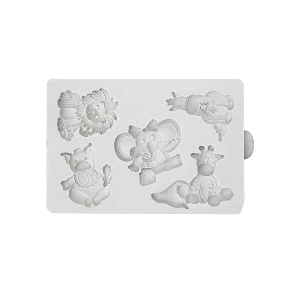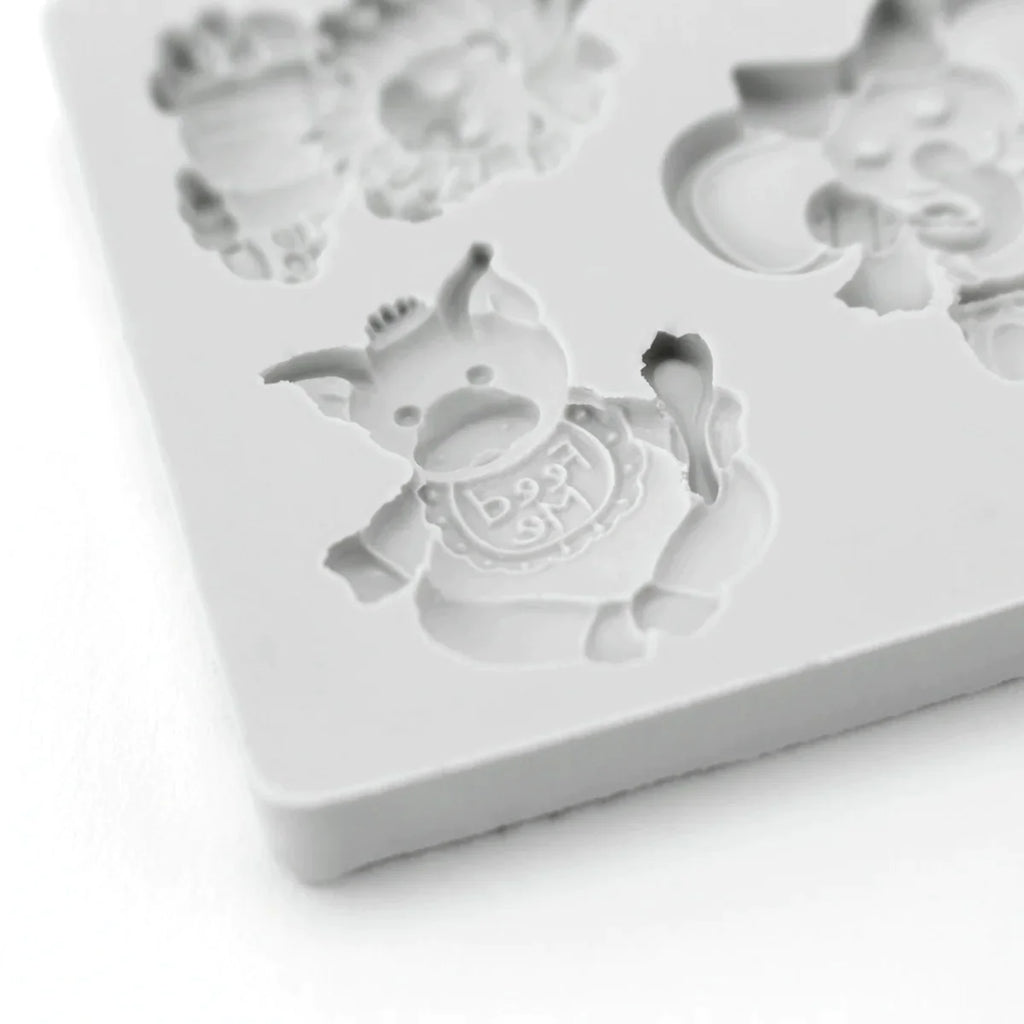 Make adorable baby animal embellishments with ease, using this silicone mould. Great for use with resin and clay, the mould will work for a variety of projects such as card-making and keepsakes, or for making miniature decorations for cookies and cupcakes. The highly detailed design features an elephant, lion, giraffe, pig and horse, each with cute baby-themed accessories such as a blanket or rattle. Original design by Alphabet Moulds.