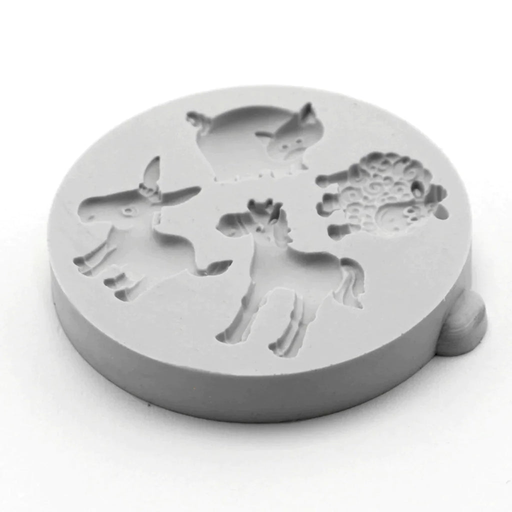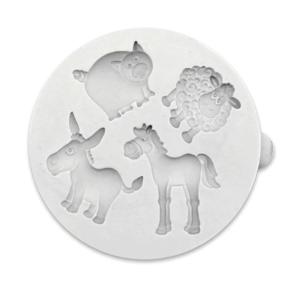This farm animal-themed silicone mould makes a selection of cute embellishments, including a Pig, Sheep, Donkey and Horse. Great for use with resin and clay, the mould will work for a variety of projects such as card-making and mixed media crafts, or for making miniature decorations for cookies and cupcakes. Original design by Alphabet Moulds.
