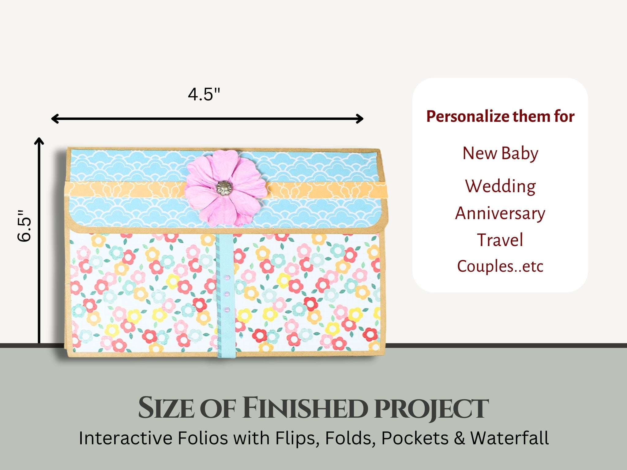 Create two beautiful Trifold Folio Wallet 5” x 7” scrapbooks effortlessly! Looking to dive into scrapbooking without the stress of cutting, scoring, and assembling? This Junk Journal Scrapbooking Kit makes 2 albums and makes the process easy and fun! Save time and focus on the creative side, personalizing your scrapbook albums with any theme you love—whether it’s for a couple, baby, wedding, birthday, anniversary or vacation scrapbook.