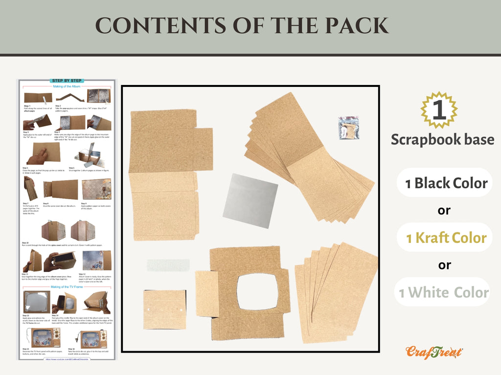 CrafTreat TV Pop Up Mini Album Kit contains : pre cut base for 1 set of 4.375x6.374x2" TV frame that houses 4.25"x6.25" interactive album with pop up elements. Perfect for capturing special memories in a unique, nostalgic design. Personalize it with your favorite papers and embellishments for a one-of-a-kind keepsake. Ideal for gifts, craft events, and scrapbook lovers!