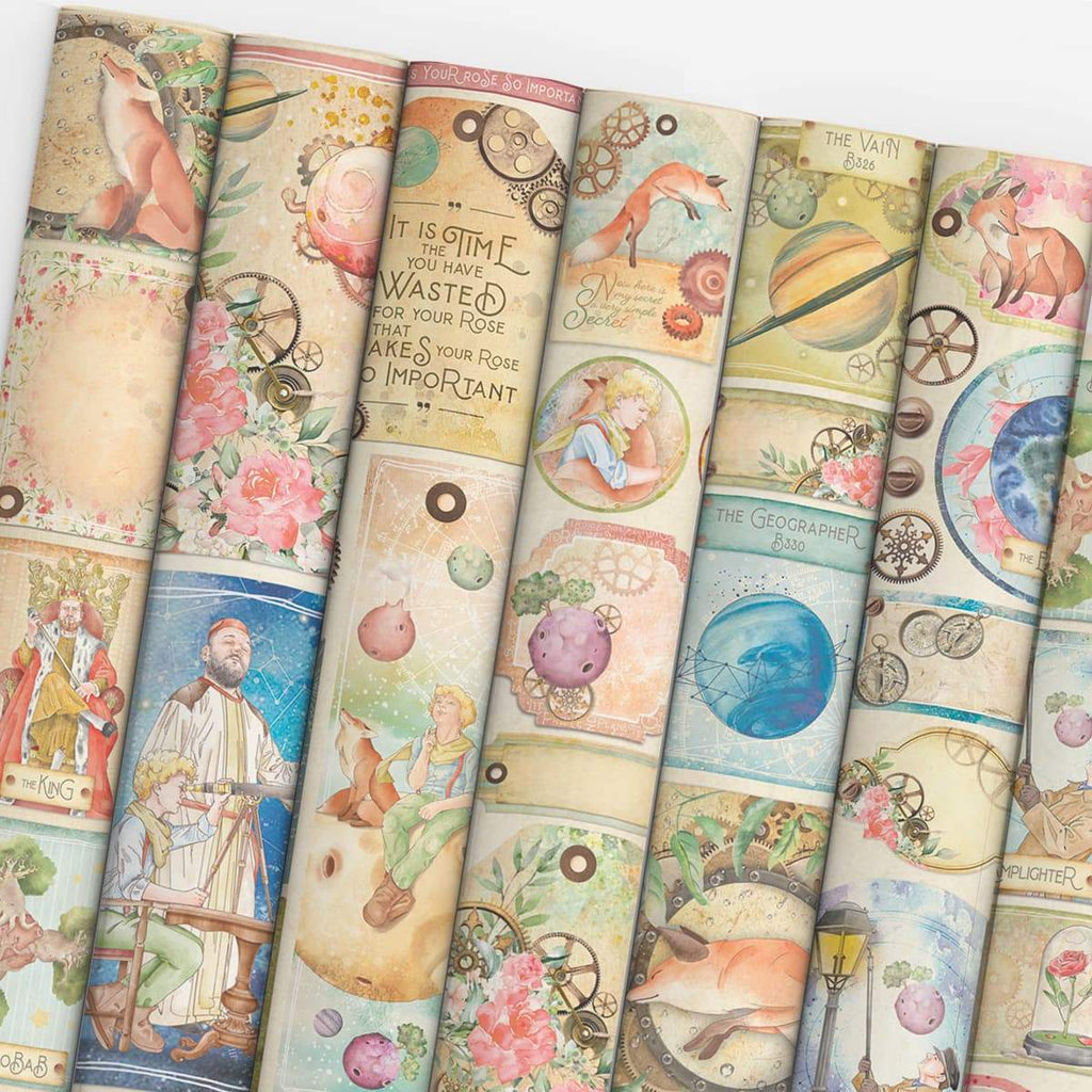 The Little Prince is one of those rare books loved by both children and adults alike. It often accompanies from childhood to adulthood, remaining one of the favorite books. Its secret is probably that it draws portraits of grown-ups as being hopelessly narrow-minded. In contrast, children come to wisdom through willingness to explore the world around them and within themselves. A long-term life lesson. Keeping in mind to look the world through the eyes of a child. This is an amazing collection of papers and polymer stamps!