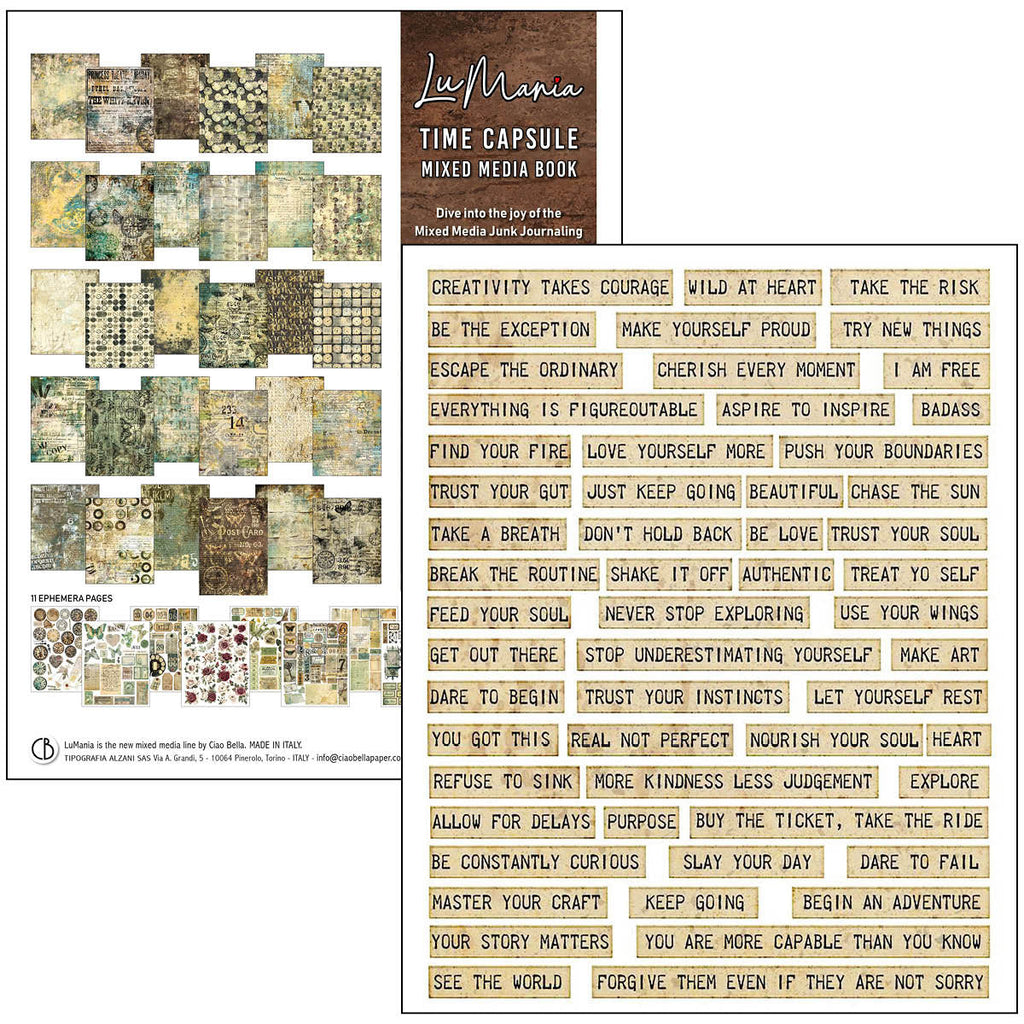 This A4 Mixed Media Book Time Capsule set includes 50 double-sided pages, including: 39 unique patterned designs and 11 ephemera pages with cards, tags, tickets, fussy-cut elements, and other decorative goodies. Unleash your style with the rustic vintage textures and illustrations in this set. Perfect for junk journal, collage, scrapbooking, cardmaking, mixed media and paper craft arts.