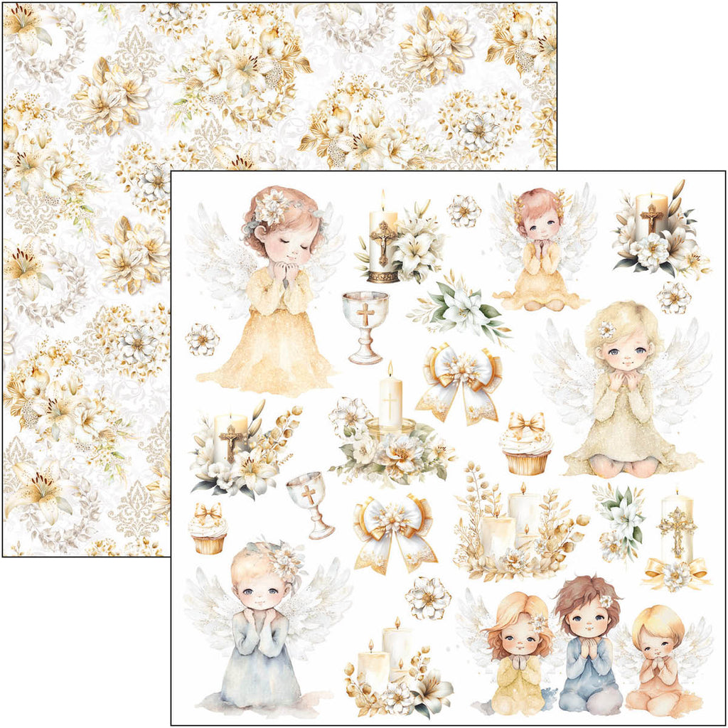 An atmosphere of sweetness and purity surrounds the Blessing Day collection, a tribute to serenity and spirituality. With delicate ivory tones, golden details, and refined floral motifs, these illustrations evoke a sense of peace and harmony. Gentle angels, enchanting churches, and ethereal flowers intertwine in elegant and luminous compositions, perfect for celebrating life’s most precious moments. Every element is designed to convey love, hope, and blessings, making this collection ideal for delicate and meaningful creations.