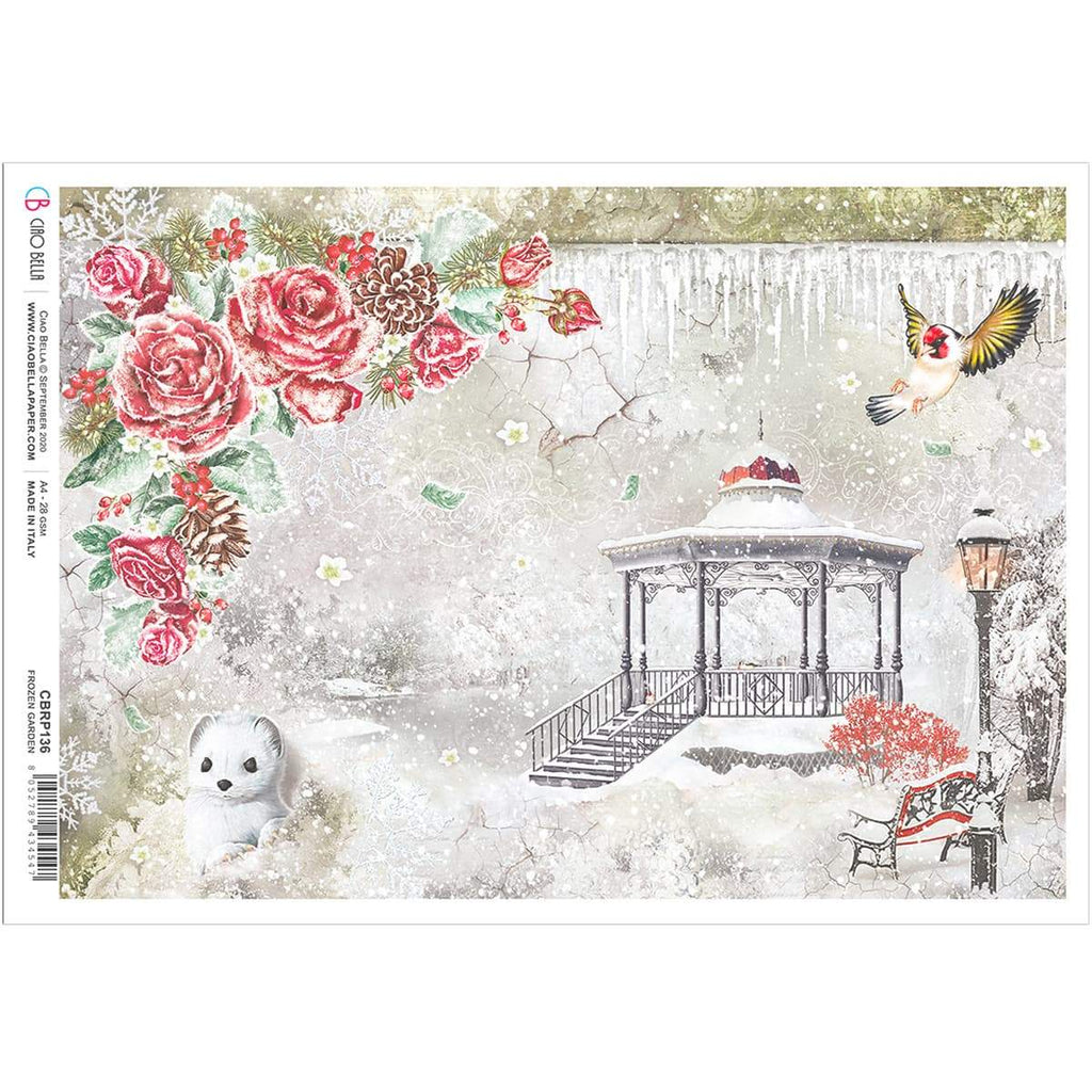- 1 design; includes images of frozen red roses, a stoat playing in the snow, a flying goldfinch and a gazebo