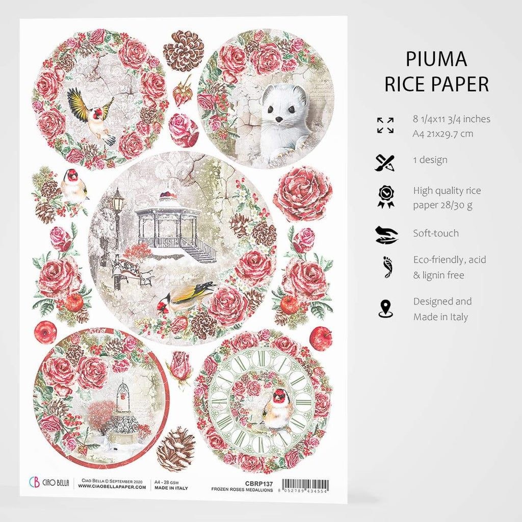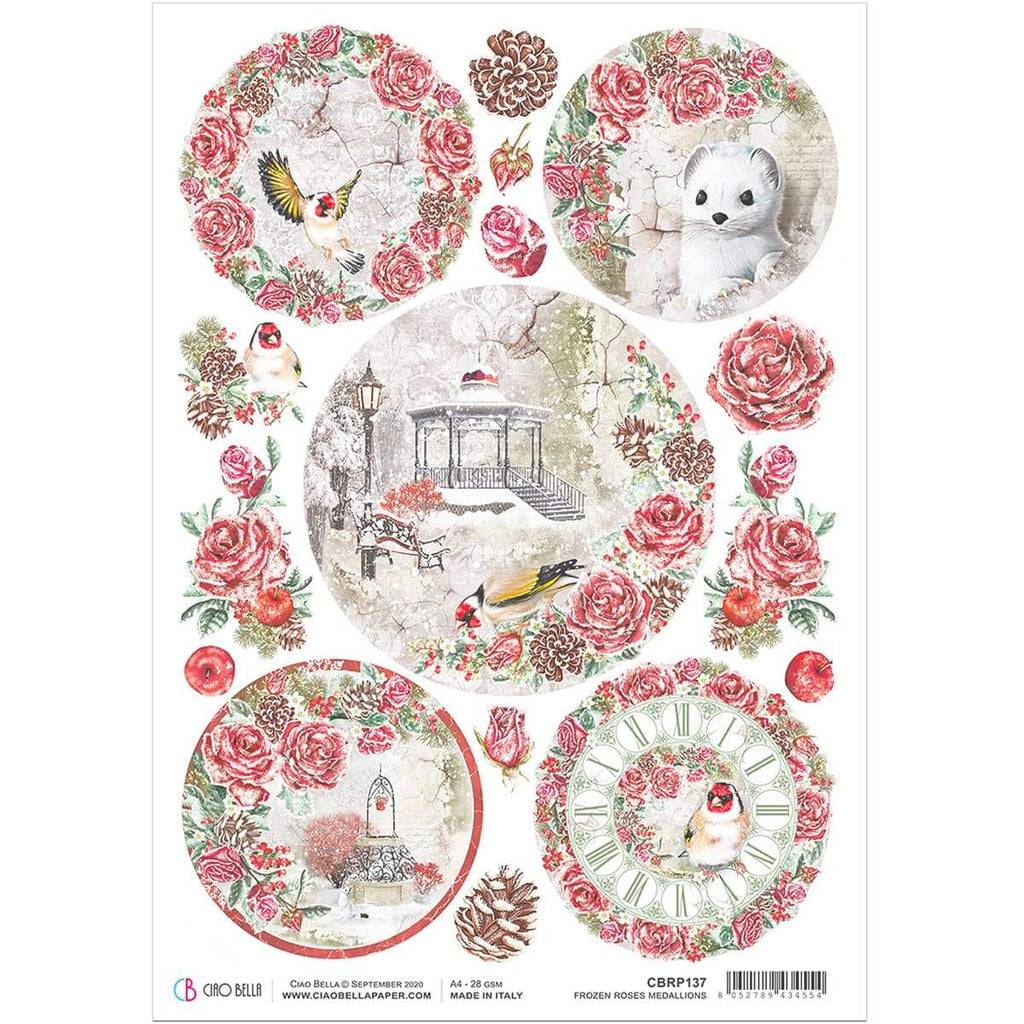 Ciao Bella Rice Paper A4 Frozen Roses Medallions