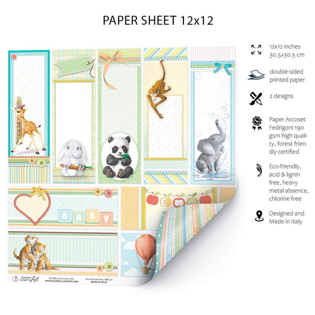 Babies’ first 12 months are full of first times and lots of fun moments. Ciao Bella has come up with a cheerful, lively and modern collection, perfect for saving all these memories, creating beautiful layouts full of photos, family trees, invitations for baby showers and much more! Unisex, with wonderful hand-drawn puppies and super cool colors, this collection is a first time for us too: the first one that comes with 2 volumes’ main pad! The sweet and funny moments, from mealtime to the bath, from games with siblings to bedtime, and the others thought up by our creative team were so many that it was impossible to put them all in a single paper pad!