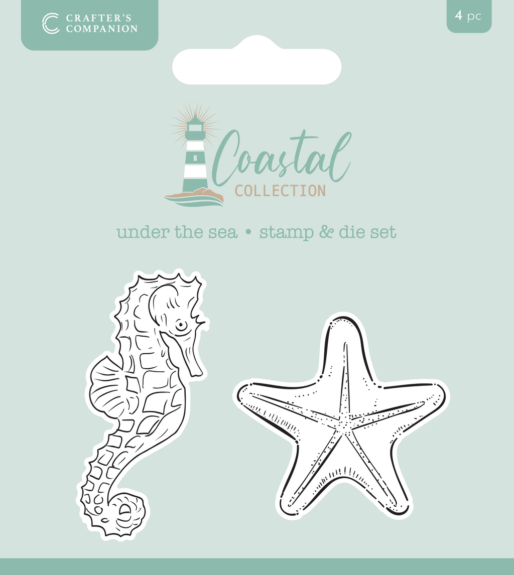 Let your crafts and projects explore the world Under the Sea with this Stamp & Die set from the Crafter’s Companion Coastal Collection. This set includes stamps with a detailed seahorse and starfish and dies to cut their outline, perfect for your ocean-themed handmade cards, gift boxes, scrapbook pages, and more.