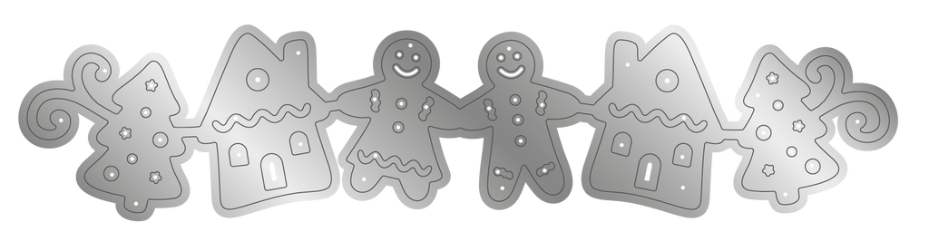 Includes one metal die of gingerbread people holding hands and linked with gingerbread houses and Christmas trees.