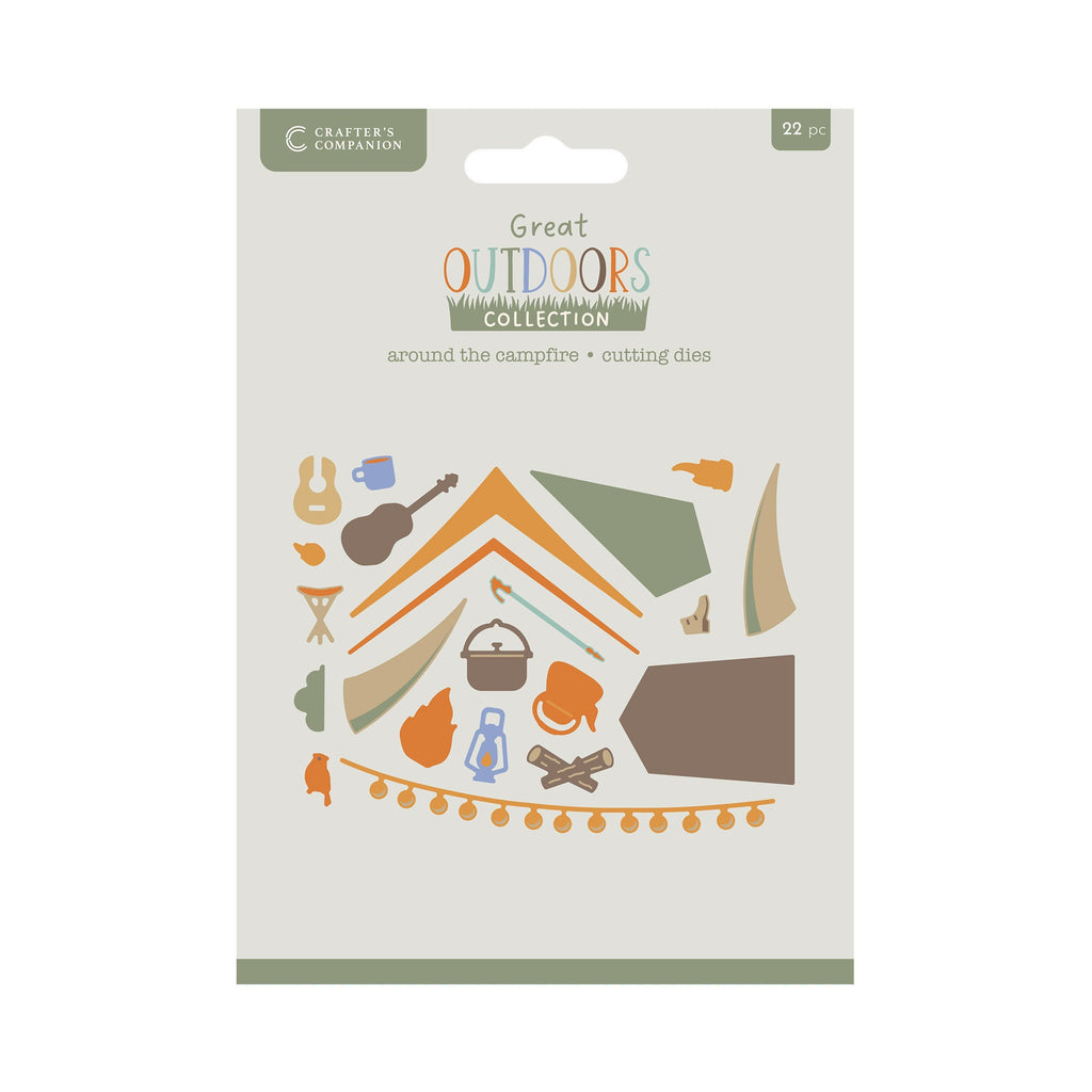 Feel the warmth of the campfire with the Around the Campfire Metal Die Set from The Great Outdoors collection by Crafter’s Companion. This metal die set includes 22 metal dies to perfectly cut all you need to create a campsite for your next handmade papercraft from cards to scrapbook pages and more.