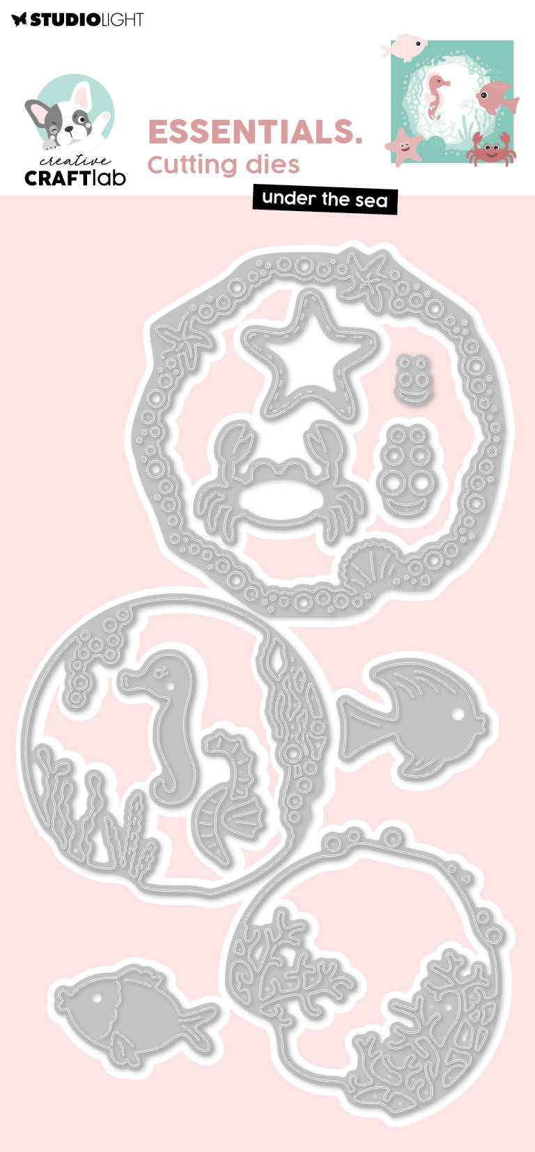 Unlock your creativity with this cutting die set and create beautiful under-the-sea scenes. Includes 3 sea themed frames as well as fish, bubbles, shells, crab and seahorse elements to finish off your projects. Perfect for one-of-a-kind cards and paper craft projects. Part of the Creative Craft Lab Essentials collection. 9 pcs