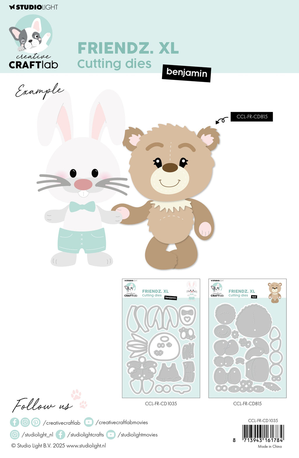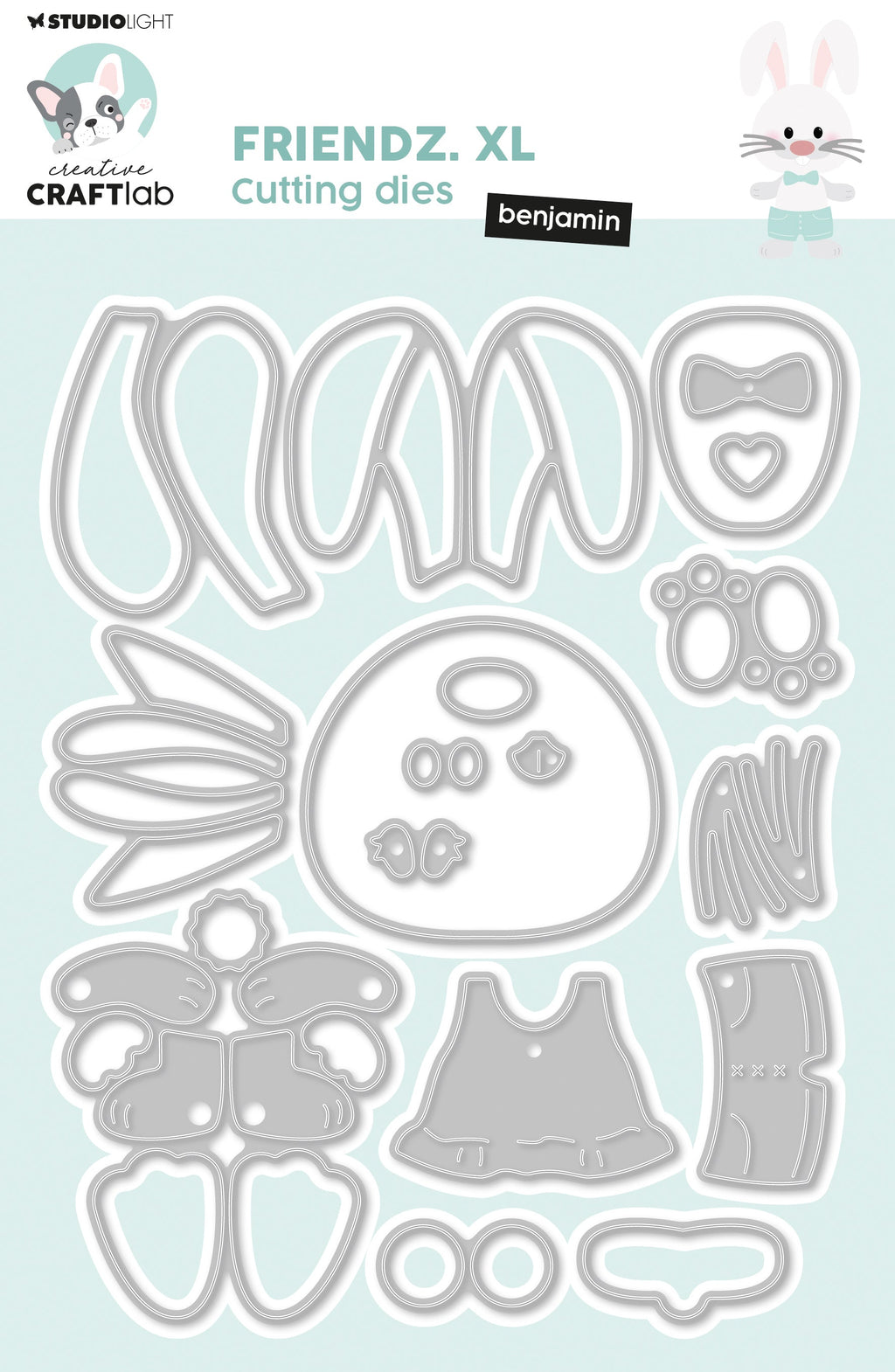 This cutting die set includes everything you need to build an adorable bunny named Benjamin including lots of accessories. This set will make a great addition to cards, scrapbook layouts and journal pages. Part of the Creative Craft Lab Friendz collection. 42 pcs