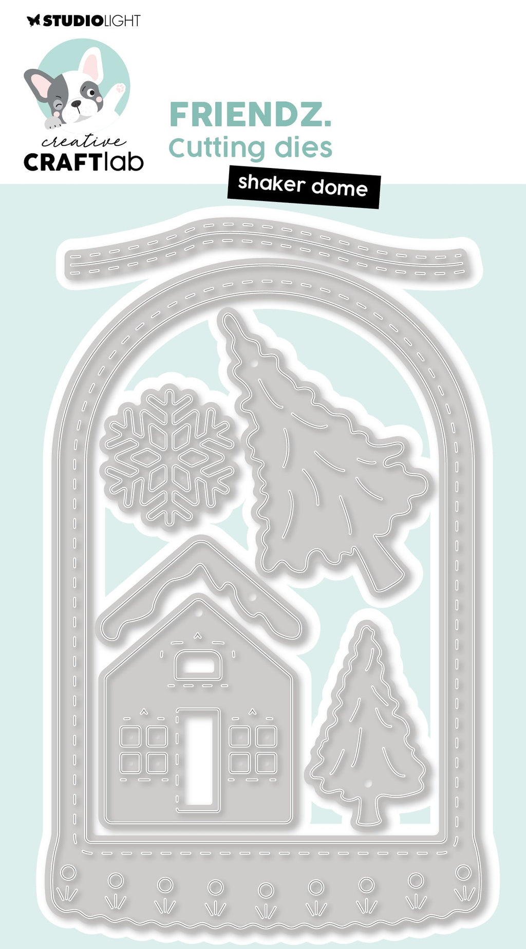 This cutting die set cuts a festive shaker dome with a cozy house, trees and snow elements to finish off your projects. If you combine this set with the dome shape shaker blister (SL-ES-BLIS14) you can make a beautiful shaker card. This set will make a great addition to Christmas and Winter themed cards, scrapbook layouts and journal pages. 7 dies.