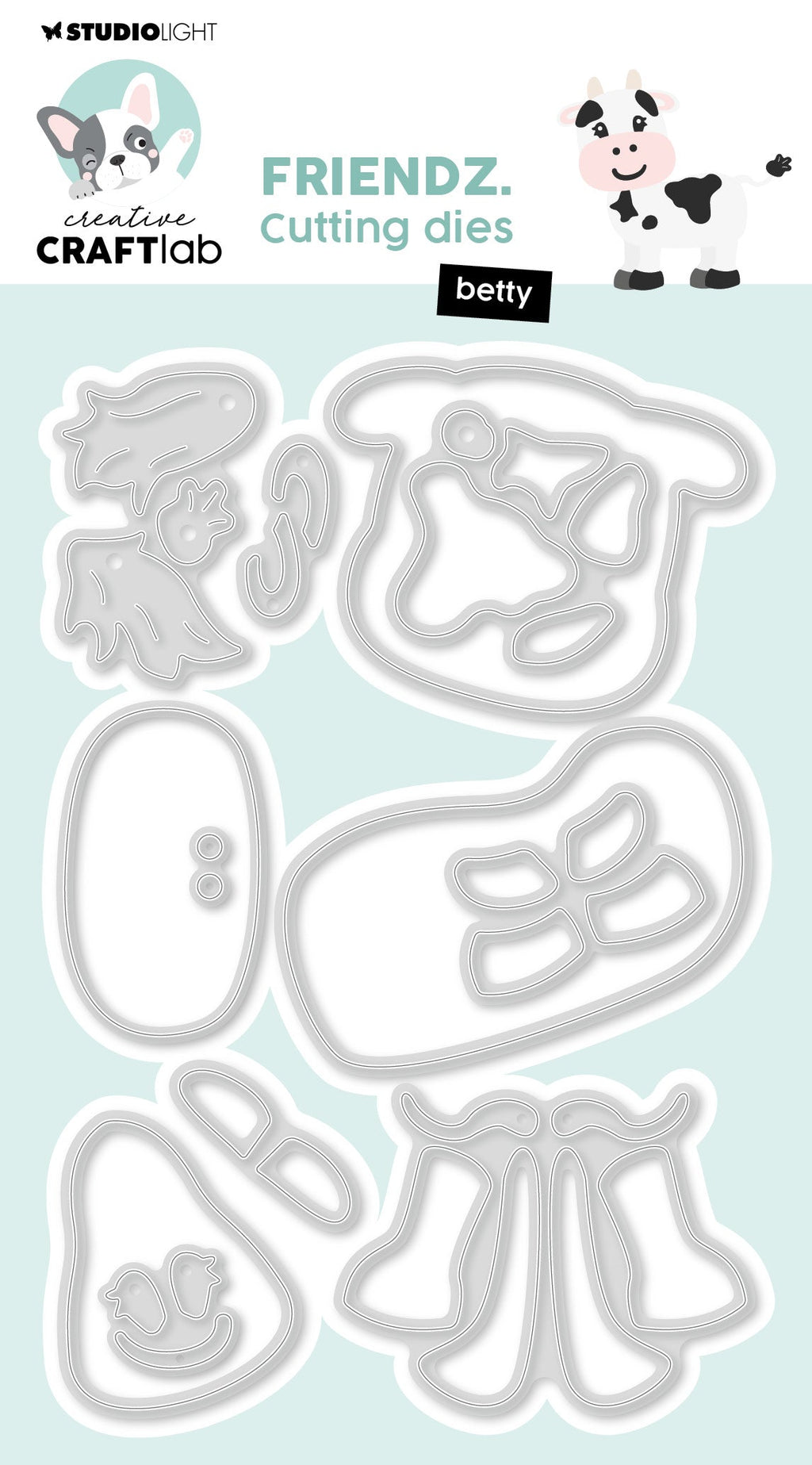This cutting die set includes everything you need to build an adorable cow named Betty. This set will make a great addition to cards, scrapbook layouts and journal pages.
