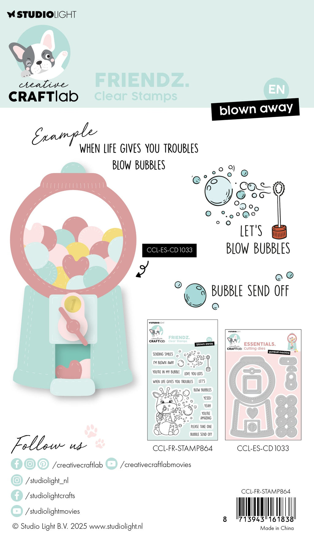 Add a personal touch to your craft projects with this clear stamp set. This set includes various fun bubble themed sentiments plus a bubble wand and an adorable giraffe blowing bubbles. Perfect to add the finishing touch to your papercraft projects. Great for scrapbooking, journaling and card making. Part of the Creative Craft Lab Friendz Collection.