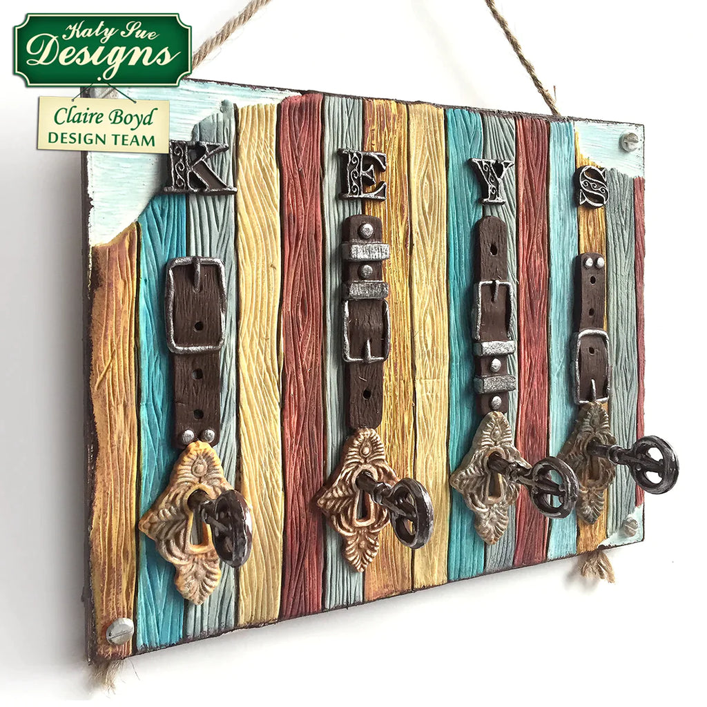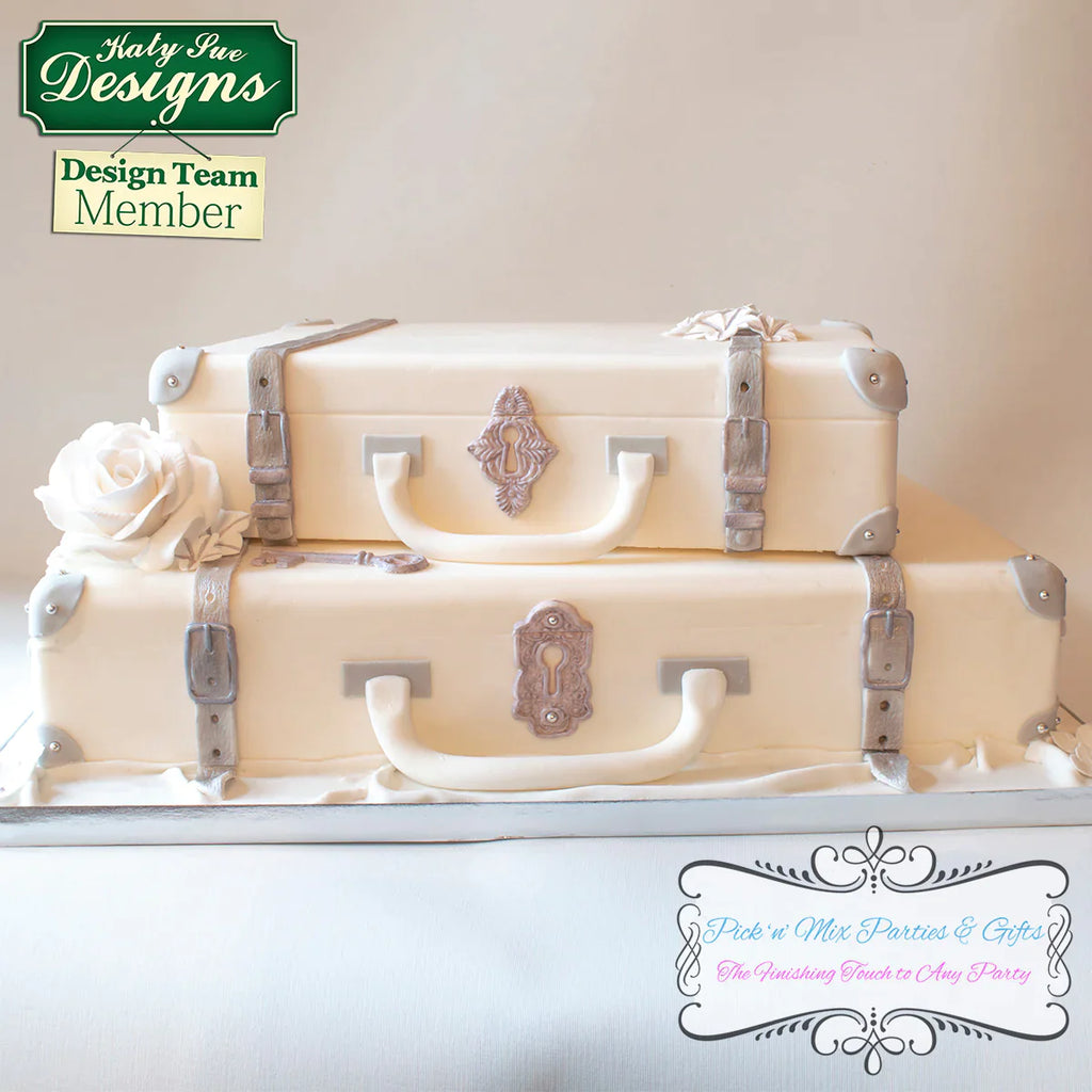 This Belt & Straps mould is perfect for adding the detailed elements to sculpted cakes such as suitcases, leather bags, jewellery boxes, trouser belts and treasure chests. All of the straps have a fine leather like texture to them. The first strap has 2 holes in the belt, rivets and a buckle, the second has a hole and a buckle as well as metal clasps and rivets. Whilst the third is just a leather texture.