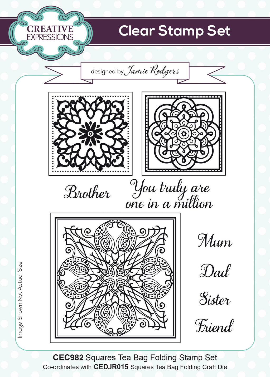 Creative Expressions Jamie Rodgers Squares Tea Bag Folding 6 in x 8 in Stamp Set