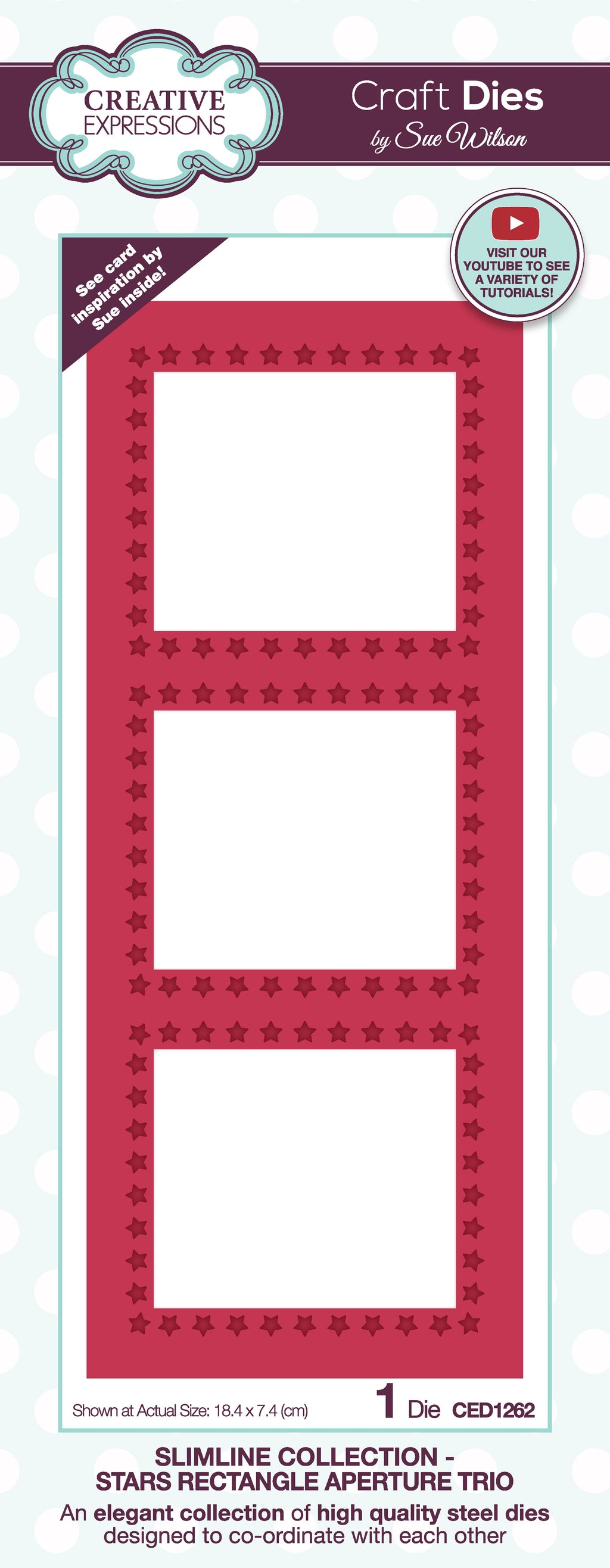 Creative Expressions Sue Wilson Slimline Stars Rectangle Aperture Trio Craft Die