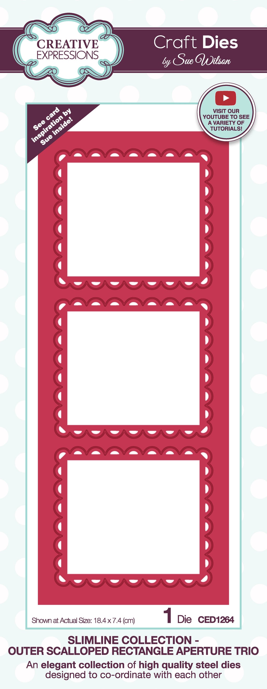 Creative Expressions Sue Wilson Slimline Outer Scalloped Rectangle Aperture Trio Craft Die