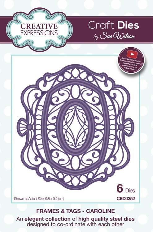 Frames and Tags Collection Caroline Die. An elegant collection of high quality steel dies designed to coordinate with each other. This set of 6 dies will produce a fancy frame perfect for all kinds of projects. Coordinates with stamp "Caroline's Elegant Damask" UMS827, "Caroline's Butterfly Dreams" UMS838. Size: 3.86 x 3.62 inches
