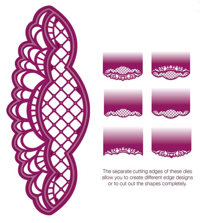 The separate cutting edges of these dies allow you to create different edge designs or to cut out the shapes completely.